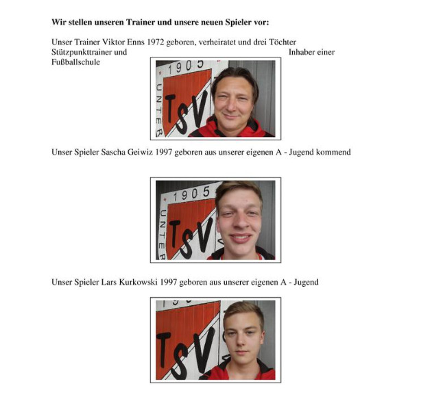 Hier werden unser Trainer und unsere neuen Spieler vorgestellt.